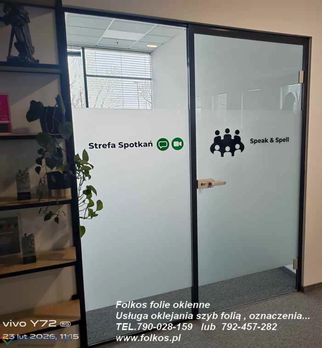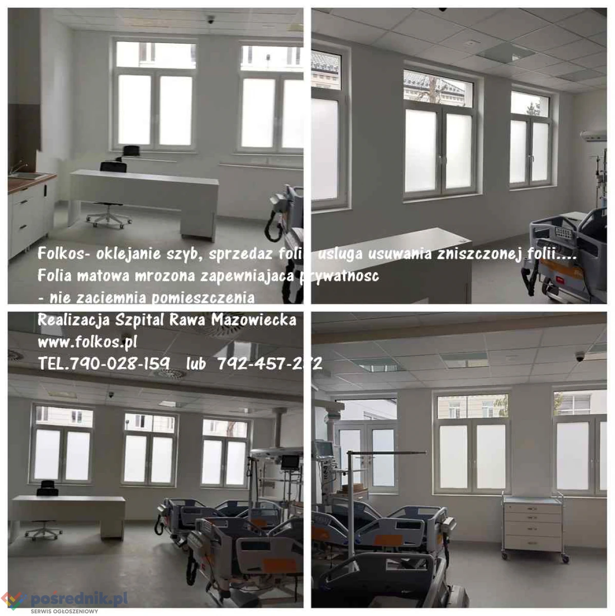 Folie prywatyzujące na okna w biurze, mieszkaniu, szpitalu, sklepie, magazynie...Folkos folie matowe na oknam drzwi, witryny, ścianki działowe Folkos
