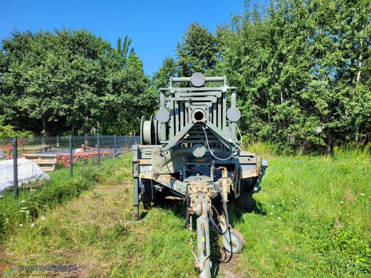 Maszt zamontowany jest na przyczepie jednoosiowej przystosowanej do