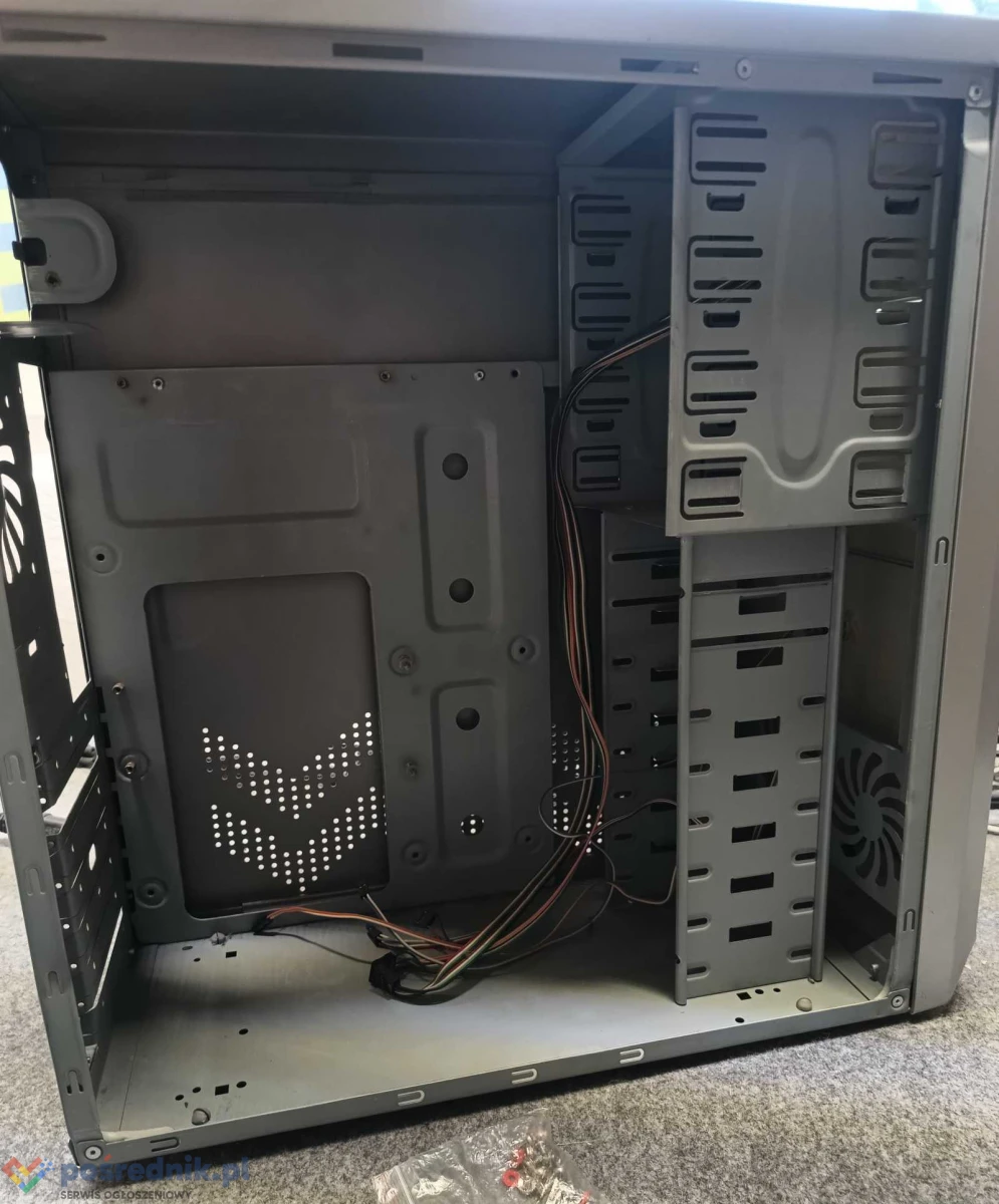 Obudowa komputerowa INCORE MidiTower szara-srebrna. Kompletna, front USB 2x2.0 i Audio. Stan bardzo dobry. Wymiary: wysokość 44,5cm szerokość 19cm, długość 46cm. Jak widać na zdjęciach wszystkie zaślepki, kable.