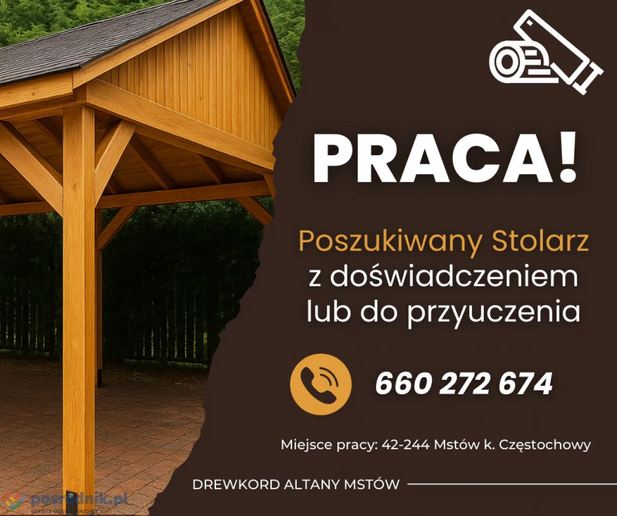 Poszukiwany stolarz z doświadczeniem lub do przyuczenia Mstów k. Częstochowy
